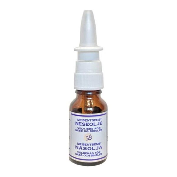 Dr Bentsens neseolje er en naturlig nesespray basert på eteriske oljer uten negative bivirkninger. Inneholder kun eteriske bio-oljer bestående av eukalyptus, peppermynte, sitron og lavendelolje med basis i en raffinert olivenolje. Når du føler at nesa tetter seg og du må puste via munnen som f.eks ved forkjølelse eller har tett nese og bihuler fordi lufta rundt deg er tørr så er Dr. Bentsens neseolje et godt hjelpemiddel. Sammensetningen av de utvalgte essensielle oljene er velduftende, skaper velvære i hverdagen og kan brukes av liten og stor.